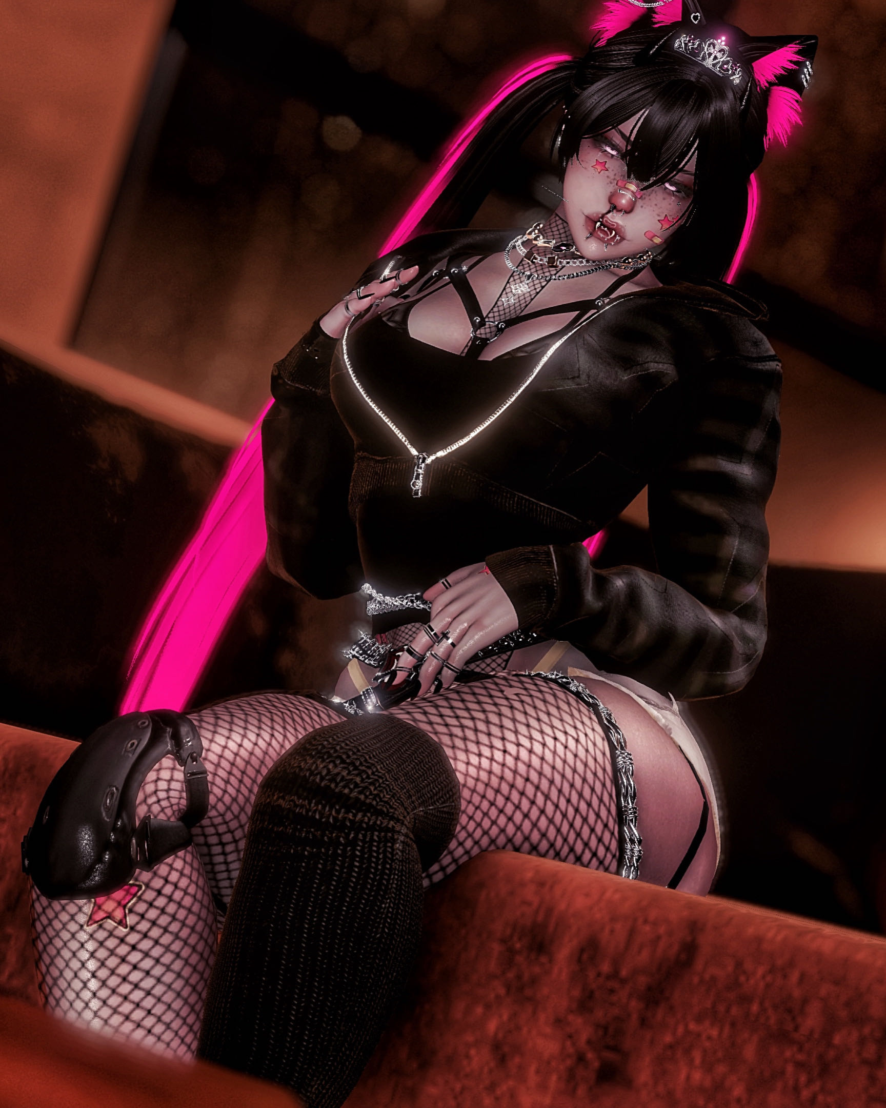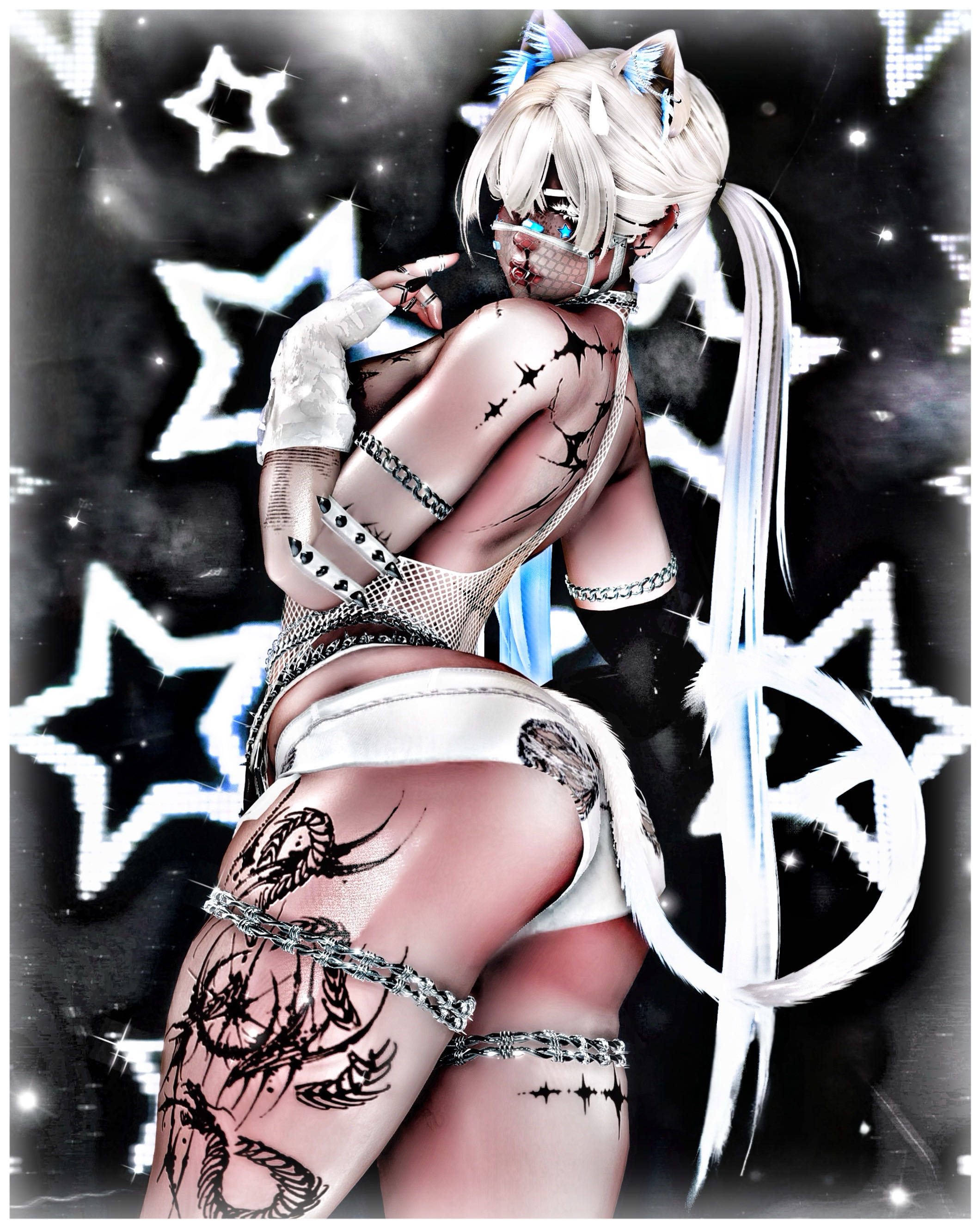 Toggles: TOPS - shirt, long sleeve & shirt, jersey, long sleeve, bra, tank, hoodie, fishnet BOTTOMS - panties, baggy shorts, leggings, shorts, sweats SHOES - shoes, high tops, slippers, heels PET STUFF - pup tail & ears, kitty tail & ears, fangs, horn ACC - bandaids, eye patch, fishnet mask, fp, gag, glasses, hat, head lafufu, keys, mouth lafufu, star headphones, stickers, tiara, boogie, pastie, arm bands arm spike, belt, bum plug, finger lafufu, glove, harness, knee pads, leg chain, leg fishnets, leg spike, leg warmers, necklace tie, tie, tire backpack, waist chain, leg lafufu SWAPS - color swaps ( tops, bottoms, shoes, acc, hue shift), HAIRS (8) hair colors (8), eyes (15), skin swaps (8), white lashes, pubes, freckles, nose bleed EXTRA - SPS, and gogo loco